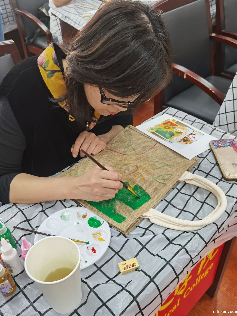 为庆祝第112个“三八”国际劳动妇女节,丰富女教职工文化生活,倡导健康生活理念,促进教职工沟通交流,营造昂扬向上的的校园文化,3月12日下午,院工会、院女教职工委员会举办“匠心巧手 美丽绽放”DIY麻布包活动。
